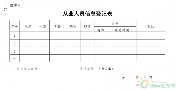 (四)“从业人员资质证明”指有10名及以上专业人员,掌握电力系统基本技术、经济专业知识,具备电能管理、节能管理、需求侧管理等能力,至少一名高级职称和三名中级职称专业管理人员,提供专业技术人员职称、毕业证书复印件,需进网作业的专业技术人员要提供“进网作业许可证”复印件,相关证件不得在其他售电公司重复使用,填报从业人员信息登记表(附件4);