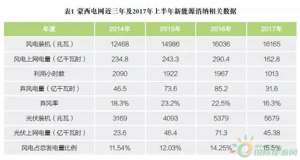 2016 年,蒙西电网风电年利用小时数为1967,比国家发展改革委、国家能源局规定的最低保障收购年利用小时数少37 小时。光伏发电年利用小时数为1476,差24 小时就完成了国家最低要求。也因此,内蒙古被列入了新能源项目的红色预警区,不得新建相关新能源项目。