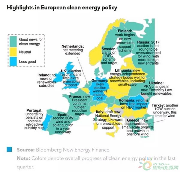 一些欧盟成员国针对各自的项目开发商与投资商出台了更为明确的支持政策。比如,匈牙利的新可再生能源发电支持项目获得了欧盟的许可,而瑞典议会也通过了修正案,以延长可再生能源证书(REC)计划并设定新目标。
