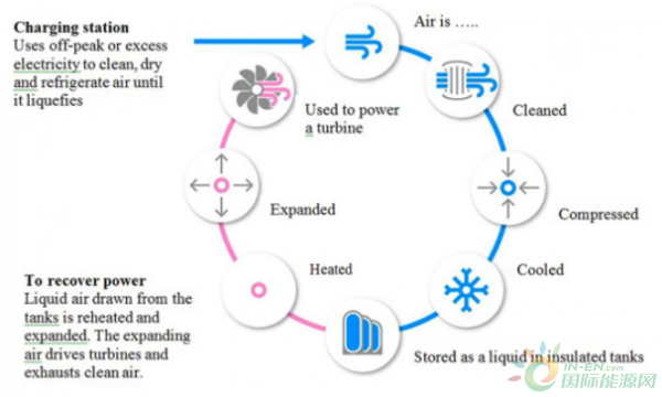 液态空气储能(LAES),也称为低温储能(CES),是一种大规模的长期储能技术,可以安装在需求点。液态空气储能(LAES)工厂可以提供长期储能。其流体是液化空气或液氮(约78%的空气),装机容量规模从大约5兆瓦扩展到数百兆瓦,该系统非常适合长时间应用。