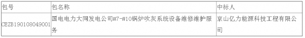 国电电力大同发电公司#7-#10锅炉吹灰系统设备维修维护服务中标结果公告