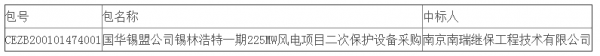国华锡盟公司神华锡林浩特风电场一期225MW风电项目二次设备采购中标结果公告
