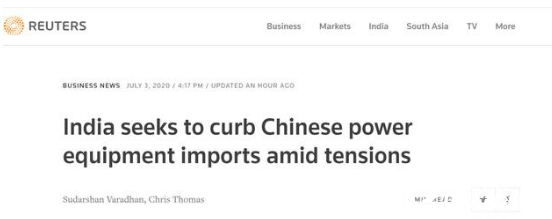 此外,路透社在报道印度政府此举时还猝不及防地泼了一盆凉水。报道称,印度长期以来一直依靠中国设备进行发电和输电,以民众可以负担得起价格提供电力。尽管这一新规将使印度公司受益,但从长远来看,这也可能导致印度国内电价上涨。