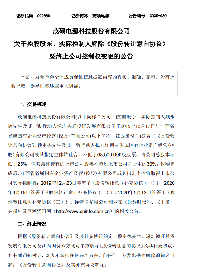 人们等待茂硕电源由国资入驻那一刻等了好几个月,没想到等来的竟然是茂硕电源实际控制人顾永德及其一致行动人深圳德旺投资发展有限公司的解约书。2020年7月9日向江西国资发送了《解除通知函》,解除之前与江西国资签订的《股份转让意向协议》及其补充协议。解约通知并没有说明解约的原因是什么,但是从公司股价的波动情况看,似乎国资入驻提升股价的目的没有达到,因为疫情影响,茂硕电源的股价在受利好消息影响出现短暂抬升后,大部分时间股价维持在低位。尤其是5月底6月初期间,股价最低已经到了8.3元左右,较之前高位接近12块的股价跌了近三成。今年上半年,茂硕电源业绩预计会实现盈利,或许是公司搭上了电力新基建的东风。茂硕电源相关负责人表示:公司将以智慧城市建设为大背景,以5G技术、AI技术的突破与应用为基础,整合内部资源,为智能灯杆提供电源整体解决方案,在助力智慧城市建设的同时提升产品与服务的附加值,提升企业的竞争能力与盈利能力。不过国际能源网记者对于茂硕电源科研费用减少表示担心。因为电力行业的科技创新能力对于企业的发展至关重要,没有创新的产品,很难维持公司在市场上的竞争力,尤其是5G时代到来,AI技术大量应用于电力行业,如果没有足够的研发投入,很难保证企业跟上行业发展的速度?但事实上却是,茂硕电源在2019年科研费用较上年同期减少了816万,2020年第一季度科研费用再较上年同期减少了208.3万。综上所述,茂硕电源公司的财务的真实情况究竟如何需要专业机构做出判断,如果公司的经营能力不足,任何粉饰业绩的行为最终都会被暴露出来。当前的茂硕电源要专注于主营业务没有错,在新基建的大背景下,公司的发展会有很大的上升空间,公司的实力需要自己修炼,任何噱头都不会长久推升公司股价,毕竟公司长远的发展需要的是市场和客户的认可。