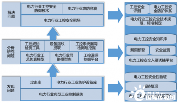 代表性案例——珞安科技电力监控系统网络安全靶场构建项目。靶场建设由发现其网络安全问题、分析研究系统网络安全问题、解决系统网络安全问题三个阶段构成,建设思路如下所示: