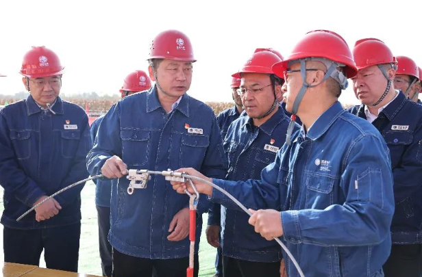 林一凡强调,陇东至山东特高压直流工程是我国首个“风光火储一体化”大型综合能源基地外送项目,工程的建成对实现西北电网“总枢纽”、西电东送“主通道”、支撑新型电力系统构建“重基地”发展定位至关重要,对推动陇东能源基地开发外送、助力革命老区乡村振兴至关重要,对助力全国电力保供、满足山东省用电需求至关重要。参建各方要全面落实“坚持安全第一、质量为本,科学施工、文明施工、绿色施工,努力打造安全优质精品工程”的要求,紧扣“三抓三促”“提质提速”工作主线,把安全生产作为首要任务,把责任落实作为关键一环,把加强协同作为有力保障,把打造精品作为目标要求,把绿色环保作为施工理念,全力以赴、攻坚克难,高起点、高标准、高质量推进工程建设,为中国式现代化甘肃实践和“一体四翼”高质量发展作出更大贡献。