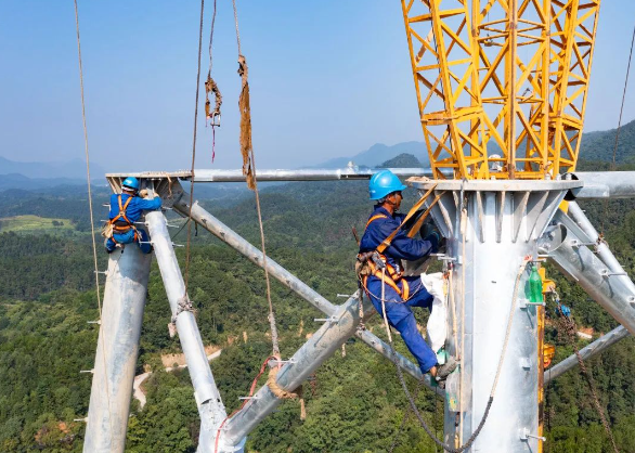 组塔最后冲刺阶段,恰逢中秋、国庆双节,为保障施工速度,所有参建员工在“双节”期间履职在岗,完成好每项工作。