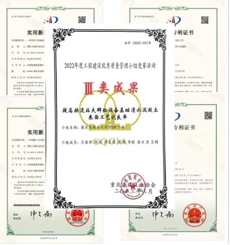 建设期间,项目团队获得4项实用新型专利以及重庆市建筑业协会QC小组成果奖1项。