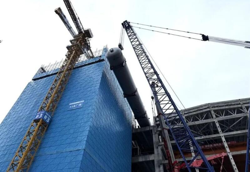 当日晨光熹微,银灰色的除氧器静卧施工现场,与周边飘扬的国旗相映成辉。随着总指挥旗帜挥落,巨型起重机吊臂缓缓舒展,将“钢铁巨罐”平稳托起。“左移五厘米,回落三毫米!”技术人员通过对讲机精准调度,吊装团队协同发力,除氧器在湛蓝天幕下划出优美弧线,最终稳稳落座,现场掌声与机械轰鸣交织成庆功乐章。