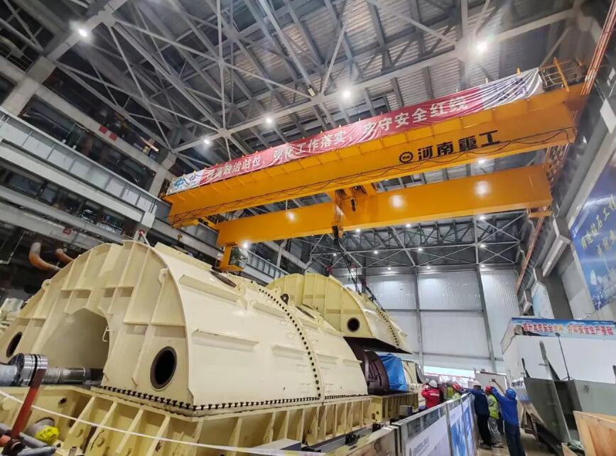 同日,上饶发电1号机组汽轮机低压缸扣盖工作实现"一次成功"。作为发电系统核心设备,汽轮机低压缸扣盖工序技术复杂、精度要求高。为确保扣盖工作万无一失,项目团队以“协同攻坚”为主线,前期建立跨部门联动机制,技术、施工、安全等专业团队共同参与方案编制,通过多轮研讨优化施工流程,明确各环节责任分工。