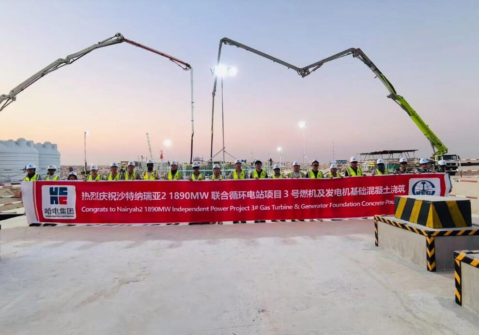 在举国欢庆中秋佳节之际,哈电国际沙特纳瑞亚2项目现场再传捷报。继10月2日顺利完成2号燃机及发电机基础混凝土浇筑后,经过数日奋战,10月7日又成功完成3号燃机及发电机基础混凝土浇筑工作,以实干献礼中秋佳节。