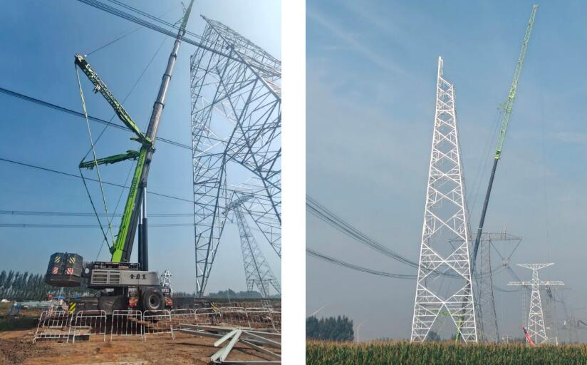 此外,项目部严格落实文明施工与绿色施工要求,全面推行机械化高效作业。组塔阶段,集中投入1台650吨、1台300吨、1台220吨大型吊车及3台25吨辅助吊车,不仅显著提升了施工效率,更通过机械化操作大幅降低高空作业风险,进一步保障施工安全。最终,工程于10月4日17时25分顺利拆除两端工作接地线,较原计划提前1天完成全部施工任务,实现“零缺陷”高质量移交,为后续工程衔接赢得宝贵时间。