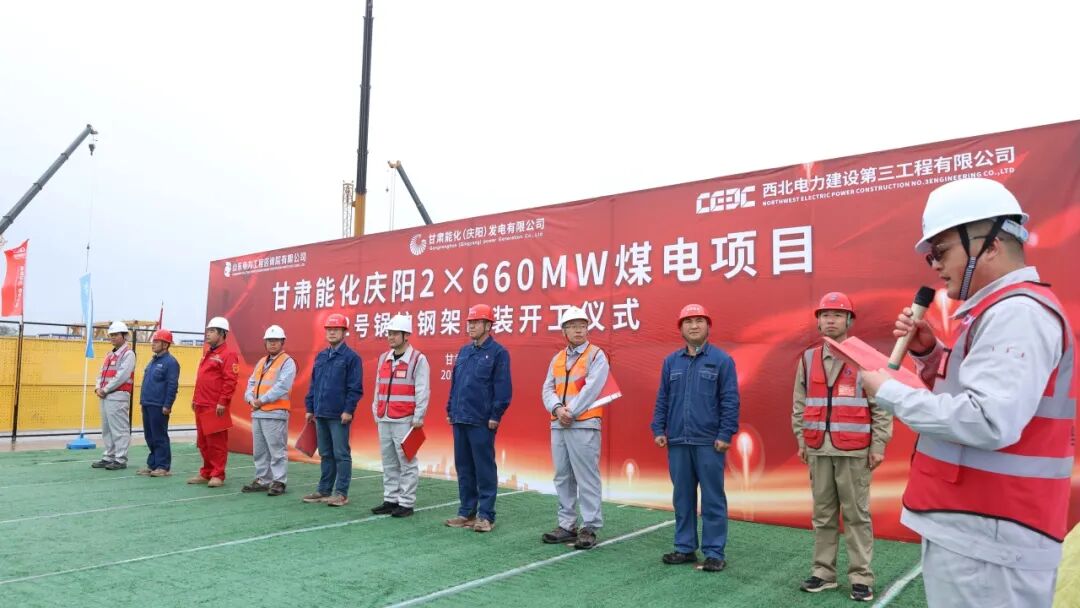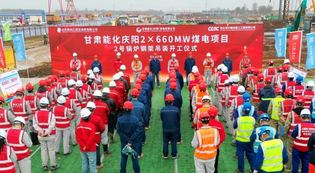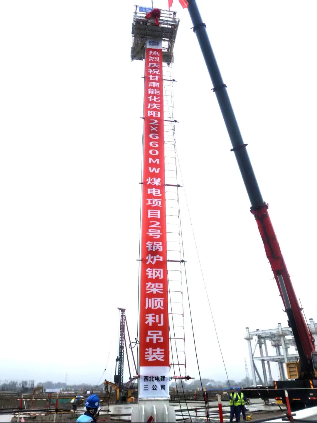 10月20日上午十点十八分,甘肃能化庆阳2×660MW煤电项目2号锅炉钢架顺利吊装就位,标志着项目从土建施工为主转入设备安装的关键阶段,为后续锅炉受热面及其他设备安装奠定基础 。西北电建三公司党委副书记、总经理井亚军参加吊装仪式。