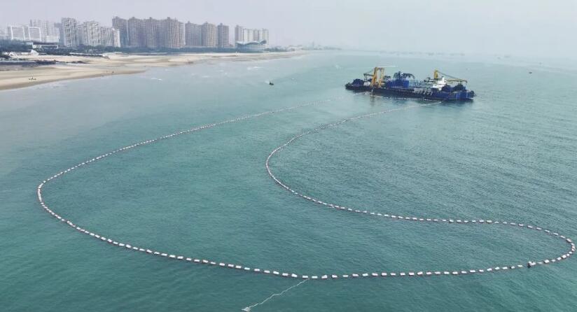 ▲2025年12月31日,220千伏涠洲岛跨海联网工程海缆敷设船开展甩缆作业,海缆登陆北海侧。(梁磊 摄)