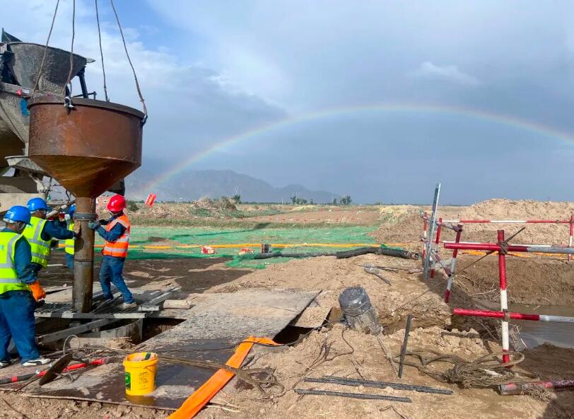 黄河大跨越段是施工的重点,施工项目部组织编制《大跨越段基础施工单基策划方案》《落地双摇臂抱杆分解组立铁塔专项施工方案》《跨越黄河架线施工专项方案》等资料,在基础周边采用轻型和重型井点降水相结合的方式进行基础施工,利用落地双摇臂抱杆组立2基161.9米的高塔,采用导线液压牵引管与导线连接的方式进行导线的牵引施工顺利完成档距为1469米的黄河大跨越架线施工,确保工程按期竣工投运。