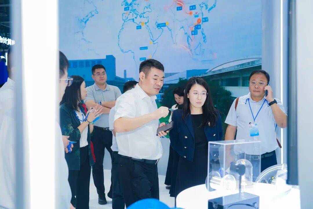 亨通光电携前沿光纤、数据中心网络互联、海洋通信系统及浸没式液冷等核心产品及解决方案参加本次活动。中国移动供应链管理中心副总经理崔芳,中国移动网络事业部副总经理顾宁伦,中国移动贵州公司党委书记、董事长、总经理张丽等莅临亨通展台参观指导。