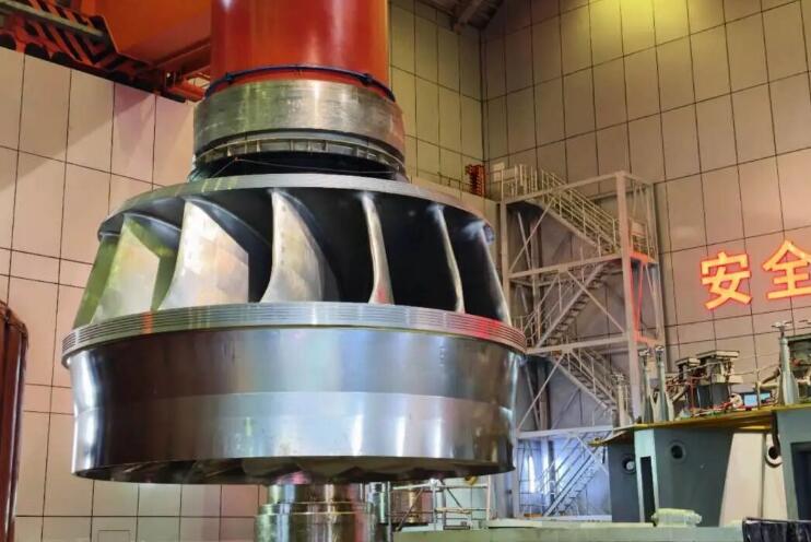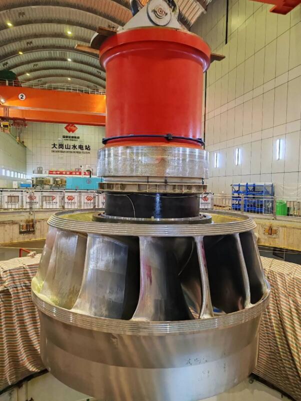 大岗山水电站机组转轮直径7.146米,转轮总高3.85米,转轮重188吨。转轮是水轮发电机的核心部件,主要作用是将水流的动能和势能转化为机械能,驱动发电机旋转发电。
