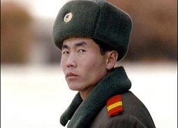 在朝韩边境巡逻的朝鲜士兵(资料图片)